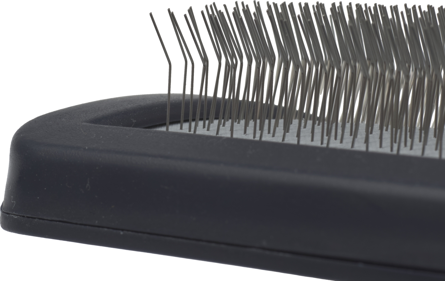 - Антистатический эффект: специальный материал и обработка зубцов предотвращают электризацию шерсти во время расчесывания;