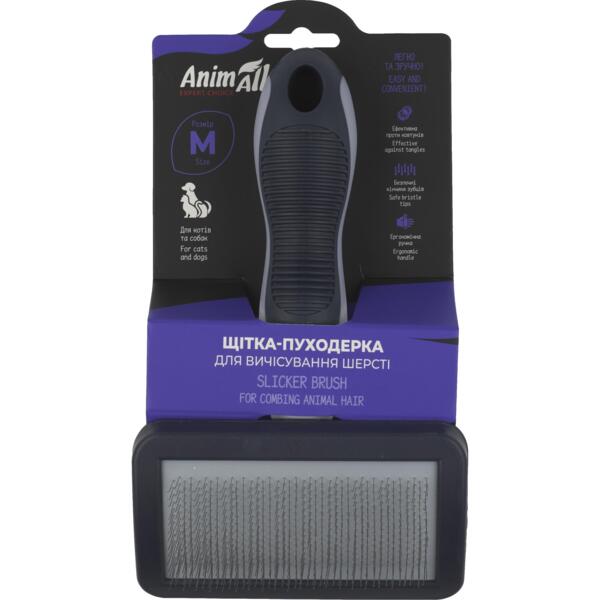 Щетка-пуходерка AnimAll прямоугольная для вычесывания шерсти размер М (184х100х40 мм)