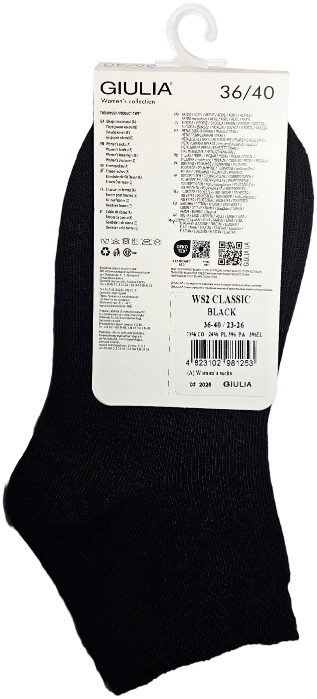 - Женские носки средней высоты Giulia 6805 Ws2 Classic 36-40 черные