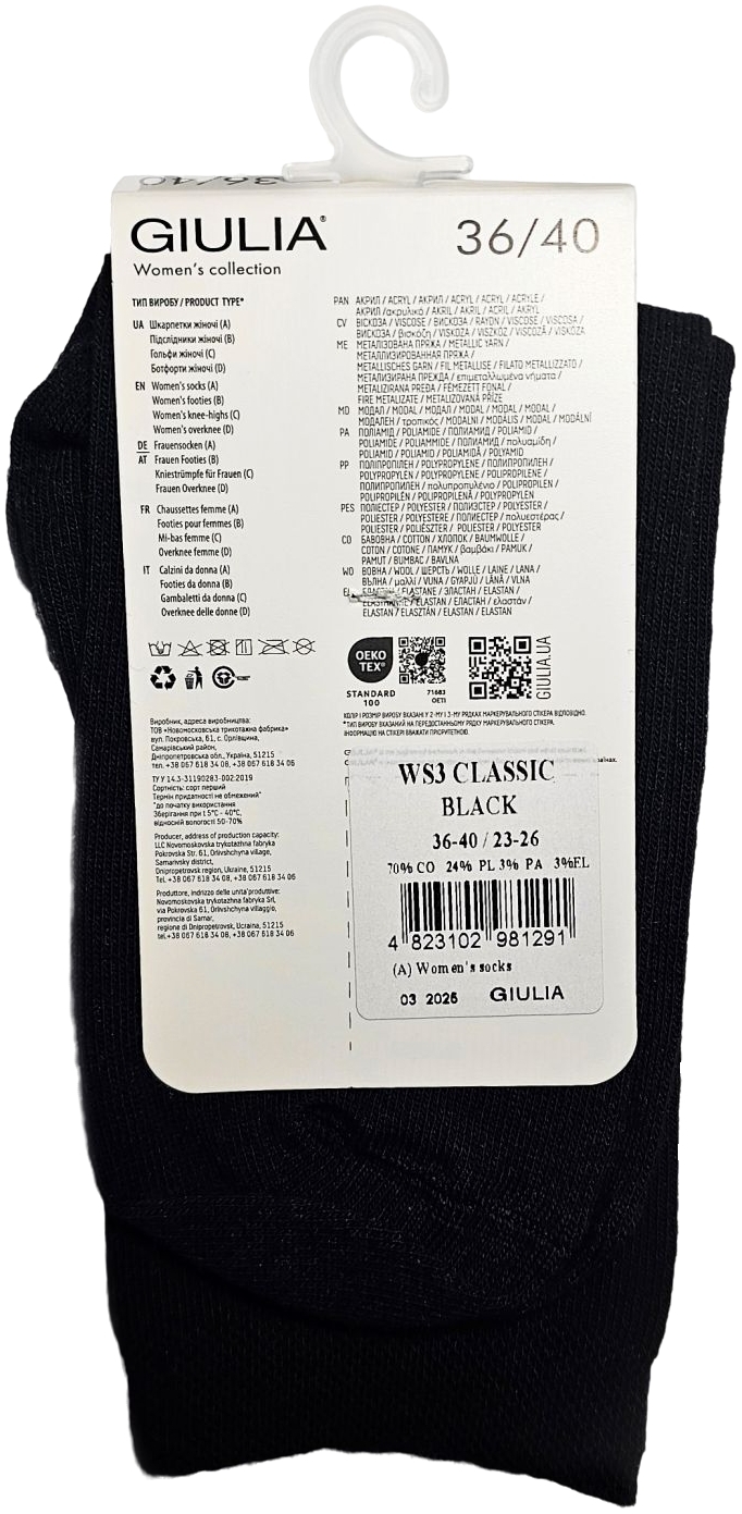 - Женские высокие хлопковые носки Giulia 6807 Ws3 Classic 36-40 черные