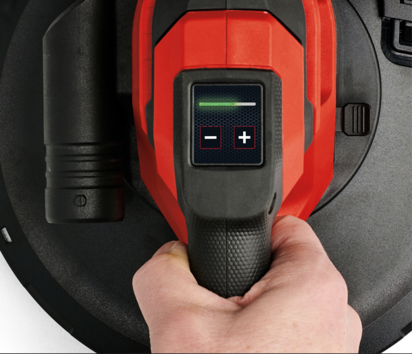 Встроенный выключатель с кнопкой блокировки облегчает шлифование и обеспечивает низкую утомляемость при работе.
