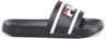 - Яркий логотип добавляет модный штрих к этим привлекательным трехцветным шлепанцам;