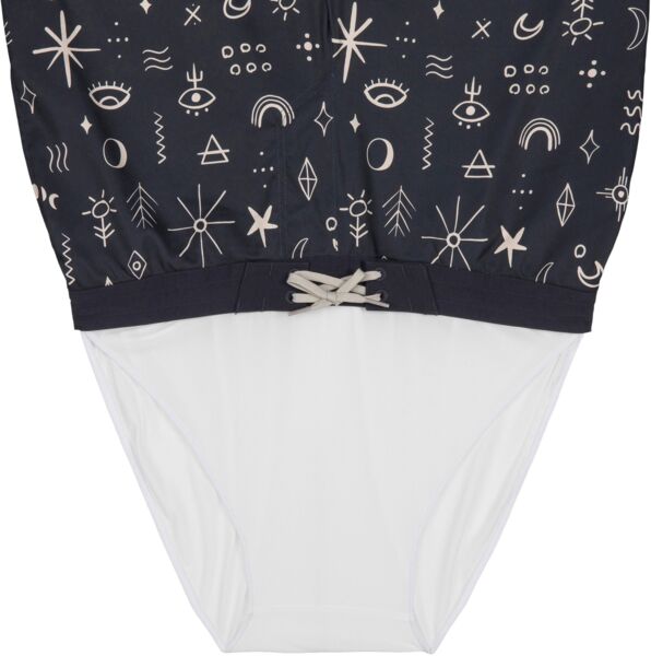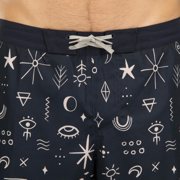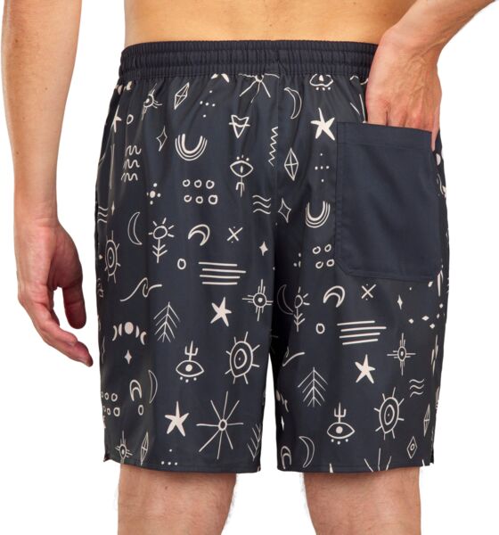 Имеют полуэластичный пояс со шнурком для надежной фиксации, удобны в посадке благодаря анатомическому дизайну. Вшитые сетчатые трусы из переработанного полиэстера обеспечивают гигиену и комфорт, уменьшая риск натирания. Материал быстро сохнет, а боковые карманы оснащены сетчатой подкладкой для дренажа воды и песка.