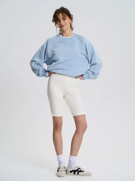 Зауженные хлопковые шорты-велосипедки длиной до середины бедра станут отличным выбором для спорта и повседневной рутины. Ткань с добавлением эластана прекрасно облегает силуэт, тянется и позволяет коже дышать.