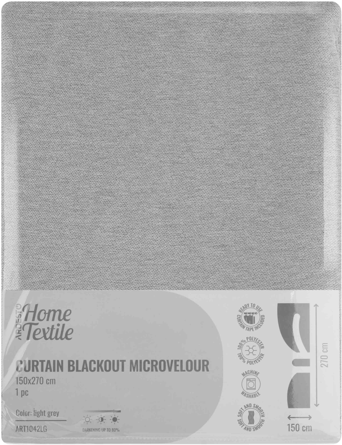 - Штора ARDESTO 150х270см, блекаут микровелюр, 100% полиэстер, серый светлый (ART1042LG)