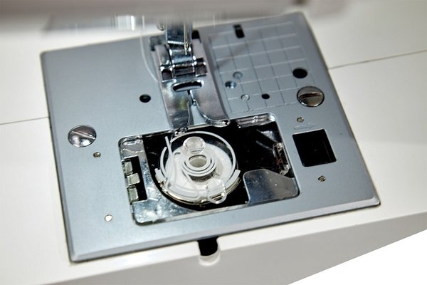 - Удобный горизонтальный челнок, машина быстро заправляется и видно наличие шпульной нити, что необходимо в процессе шитья.