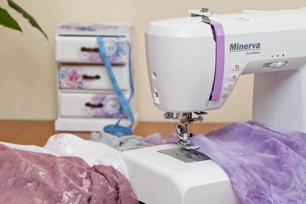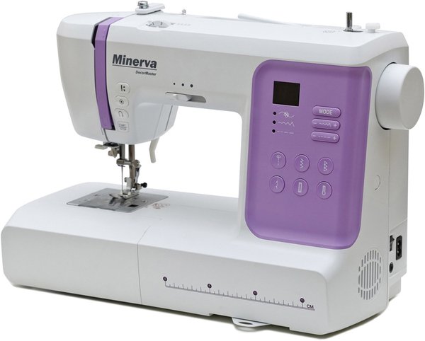 Компьютерное управление и современные возможности. Выполняет 80 швейных операций, среди которых стандартные, оверлочные, эластичные и декоративные строчки, а также 5 видов петель. Работает с любыми видами тканей. Эта модель оснащена челноком ротационного типа, который обеспечивает высокое качество строчки. Кроме того, такой механизм удобен в заправке нижней нити и не требует смазки. Швейная машина имеет удобную функцию боковой обрезки нити, что существенно упростит работу при заправке нити в ушко иглы. Minerva Decormaster умеет шить без подключения педали, при этом скорость регулируется на панели швейной машины. В наличии вспомогательные функции: позиционирование иглы, электронная закрепка строчки, реверс, свободный рукав и другие, которые обеспечат комфортное шитье.