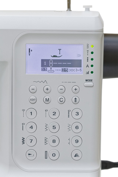- Возможность сохранения в памяти комбинации стежков.