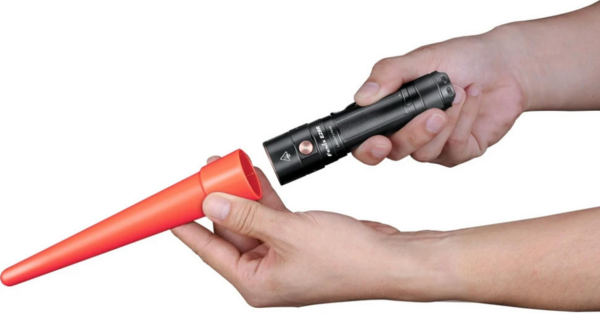 Fenix AOT-S+ - это сигнальный жезл, который трансформирует белый, направленный луч света в рассеянное освещение красного спектра. С помощью этого аксессуара можно подавать сигналы SOS и предупреждать людей об угрозе на дороге.