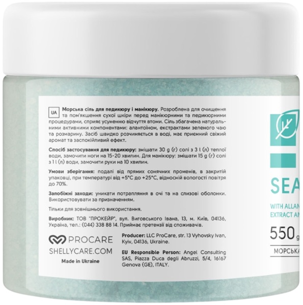- Соль для ванн Shelly с аллантоином, экстрактом зеленого чая и розмарина 550 г