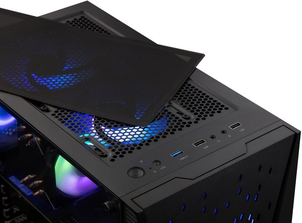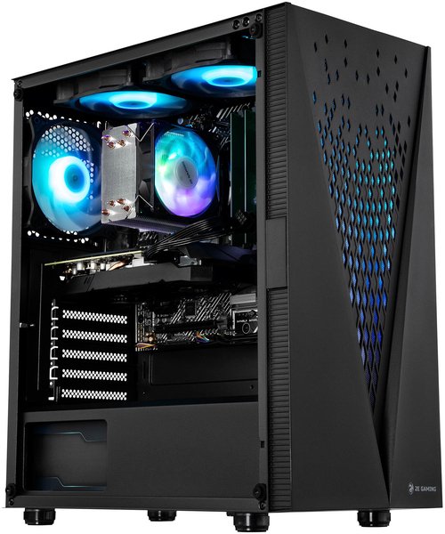 Среди примечательных особенностей системного блока - вентиляторы с RGB подсветкой, а также боковая панель из закаленного стекла.