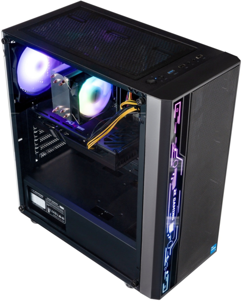 Благодаря обширному спектру интерфейсов создаются максимально комфортные условия для работы с подключением современных периферийных устройств. Среди примечательных особенностей системного блока - вентиляторы с RGB подсветкой, а также боковая панель из закаленного стекла.