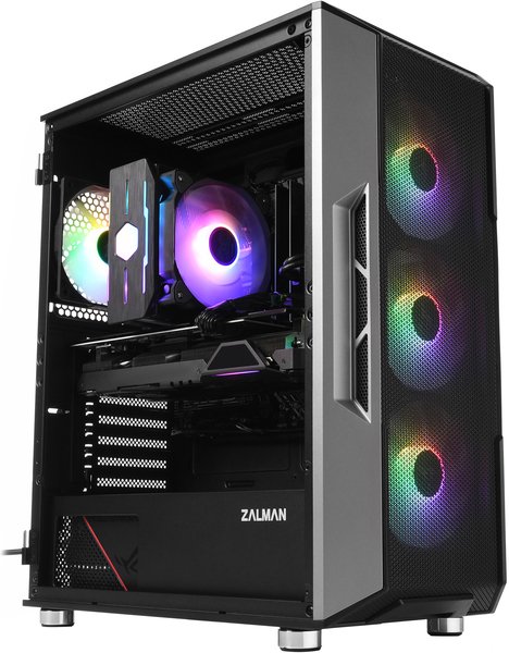 Среди примечательных особенностей системного блока - вентиляторы с RGB подсветкой, а также боковая панель из закаленного стекла.