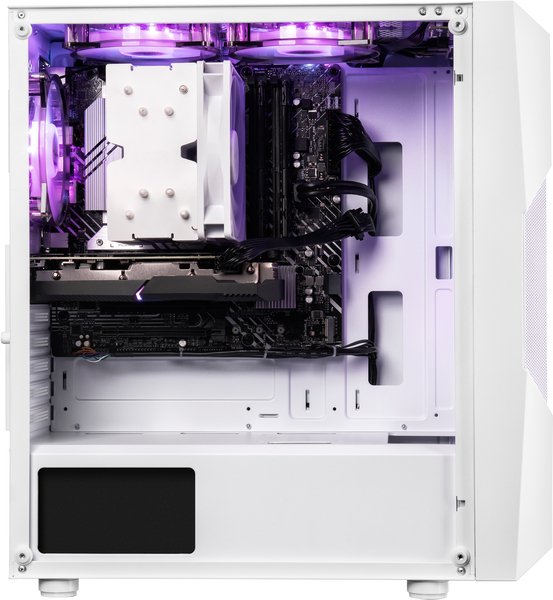 Среди примечательных особенностей системного блока - вентиляторы с RGB подсветкой, а также боковая панель из закаленного стекла.