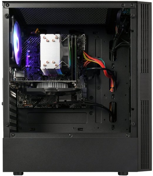 Благодаря обширному спектру интерфейсов создаются максимально комфортные условия для работы с подключением современных периферийных устройств. Среди примечательных особенностей системного блока - боковая панель из закаленного стекла.