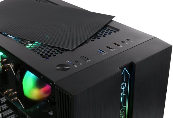 Благодаря обширному спектру интерфейсов создаются максимально комфортные условия для работы с подключением современных периферийных устройств. Среди примечательных особенностей системного блока - боковая панель из закаленного стекла.