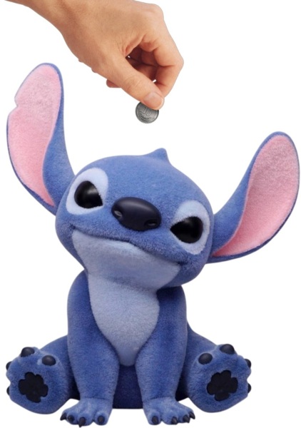 На спинке Стича есть отверстие, через которое можно забрасывать деньги, монетки, бумажки с аффирмациями и тому подобное. Чтобы достать свои сбережения, вытяните пластиковую затычку на нижней части копилки. А еще у него есть фишка - он флокированный и чрезвычайно приятный на ощупь.