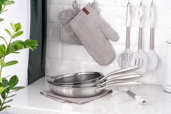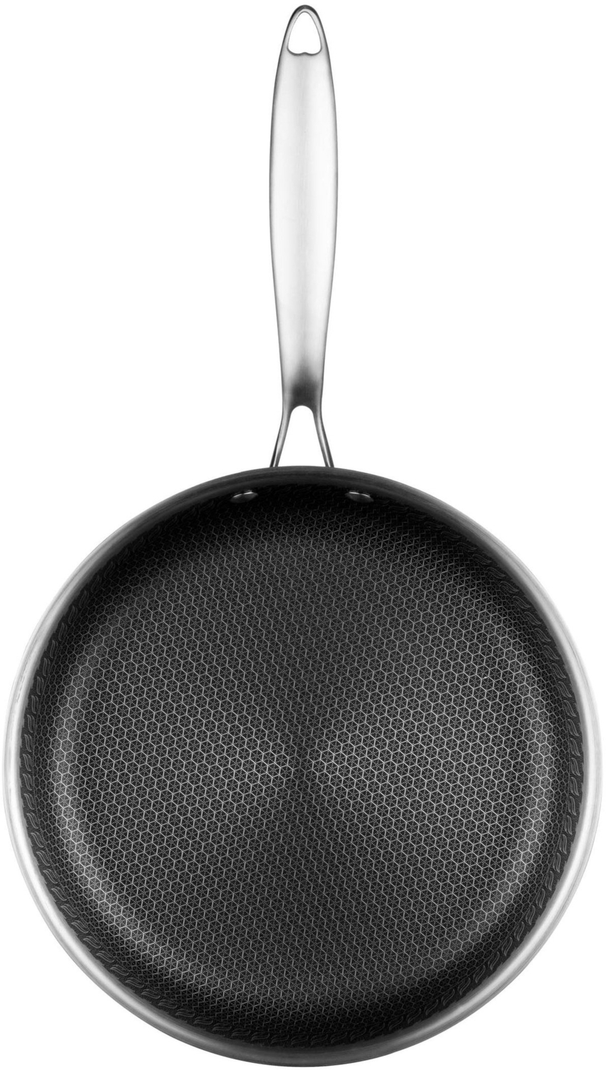 Сковорода диаметром 26 см, изготовленная из нержавеющей стали по технологии Triply, обеспечивает отличную теплопроводность и равномерное распределение тепла по всей поверхности. Антипригарное покрытие устойчиво к царапинам, поэтому вы можете без опаски пользоваться металлическими лопатками, вилками или ложками. Благодаря прочной конструкции с одинаковой толщиной стенок и дна — по 2,5 мм, изделие сохраняет форму даже при длительном нагревании. Высота стенок 5 см позволяет комфортно готовить как жареные блюда, так и небольшие рагу или соусы. Сковорода совместима со всеми типами плит и пригодна к мытью в посудомоечной машине, что упрощает уход за ней.