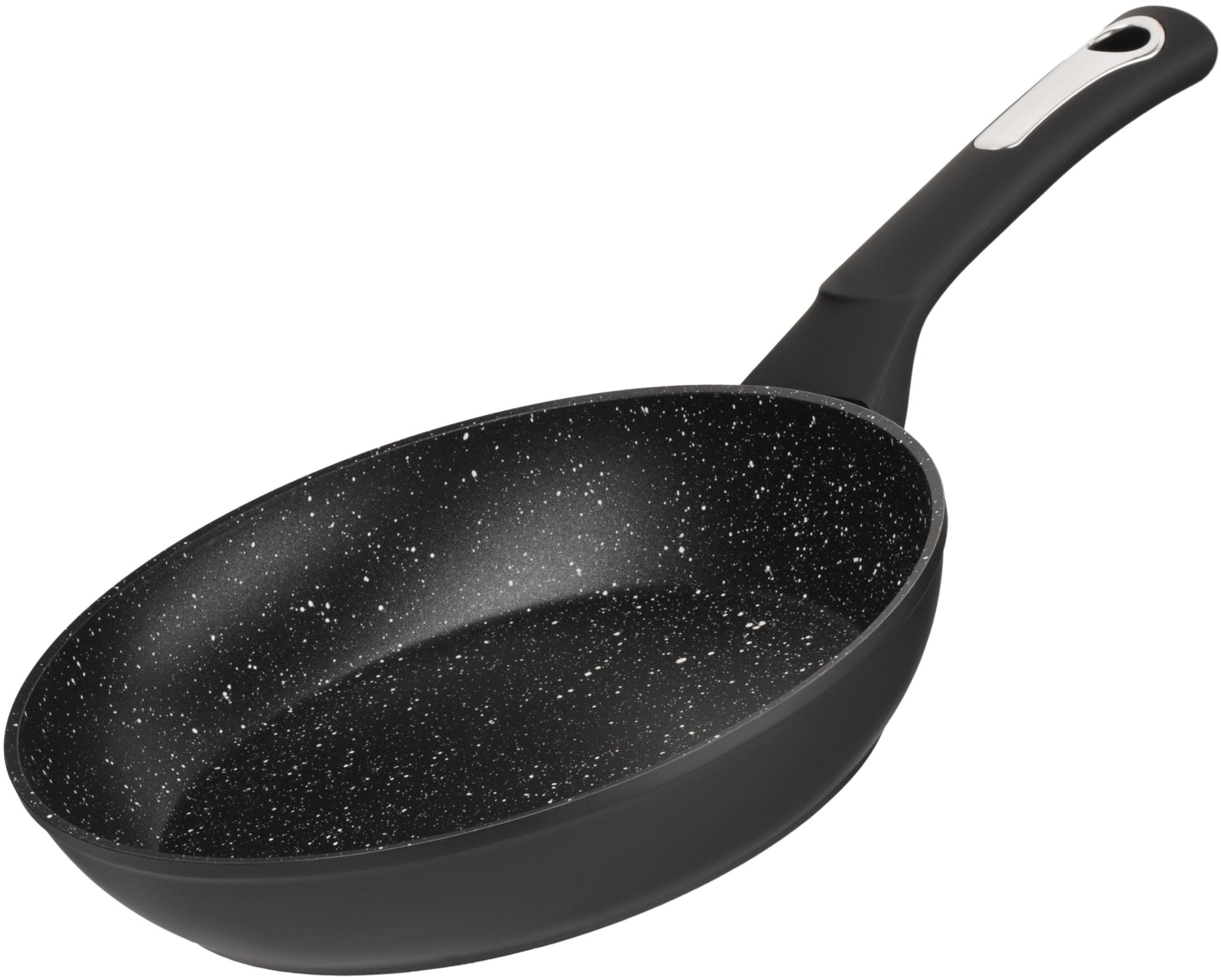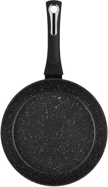 Черная сковорода диаметром 26 см изготовлена из кованого алюминия, что обеспечивает равномерный нагрев по всей поверхности и способствует экономии энергии во время приготовления блюд. Мраморное антипригарное покрытие обладает высокой износостойкостью и устойчивостью к царапинам, позволяет готовить с минимальным количеством масла и значительно облегчает процесс очистки. Благодаря оптимальной толщине стенок сковорода обладает высокой термостабильностью и долговечностью. Эргономичная ручка с покрытием Soft-touch не скользит, не нагревается и обеспечивает комфортное удержание даже при длительном приготовлении. Сковорода совместима со всеми типами плит, включая индукционные, однако для сохранения ее функциональных свойств не рекомендуется мыть в посудомоечной машине.
