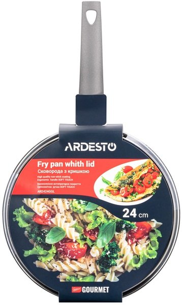 - Сковорода ARDESTO Gemini Gourmet с крышкой 24 см, серый мрамор, алюминий (AR2424GGL)
