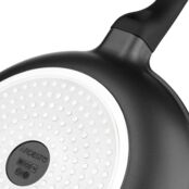Сковорода имеет прочную основу из литого алюминия и антипригарное покрытие Pfluon, которое обеспечивает легкое приготовление блюд. Удобная бакелитовая ручка с покрытием Soft-touch добавляет комфорта во время работы, а также делает процесс приготовления более безопасным и приятным.