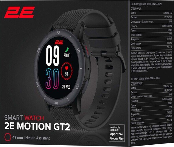 - Смарт-часы 2E Motion GT2 47mm Black (2E-CWW21BK)