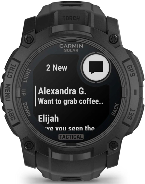 Instinct 3 – Tactical Edition — это прочные GPS-смарт-часы, созданные для самых сложных миссий, с солнечной зарядкой, металлическим укрепленным безелем и специальными тактическими функциями.