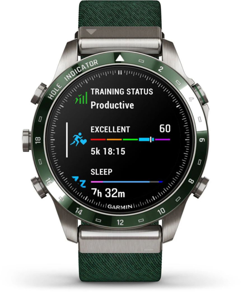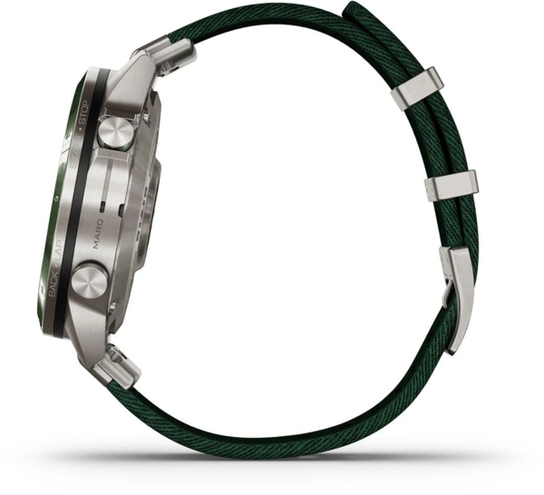 Пусть все знают, что вы живете ради игры. Эти роскошные современные часы оснащены зеленым ремешком из нейлона с жаккардовым плетением, потрясающим сенсорным AMOLED-дисплеем с традиционными кнопками управления и 46-миллиметровым корпусом из титана 5-го класса, обеспечивающим исключительную прочность.