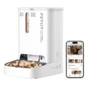 С двумя отсеками для хранения корма и подключением к приложению PetKit, кормушка предлагает удобное управление и мониторинг рациона вашего питомца даже в ваше отсутствие. Вы можете использовать сухой и сублимированный корм и управлять выдачей каждого отсека отдельно.