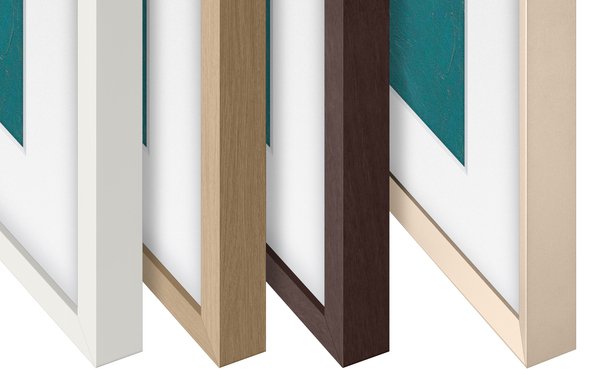 Рамки к The Frame доступны в 4 цветах, включая белый, тиковый, коричневый и золотой песок, которые создают изысканный контраст и эстетически дополняют ваше пространство.