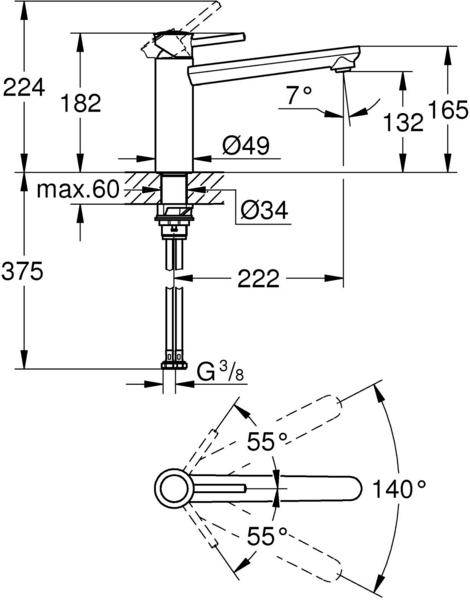 Монтаж смесителя осуществляется на одно отверстие, что сделает процесс установки более быстрым и комфортным. С системой быстрого монтажа Grohe он станет еще легче.