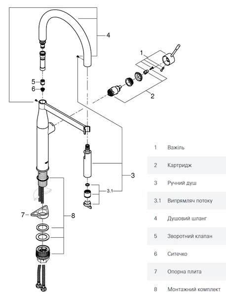 Инструкции Смеситель для кухни Grohe Essence, 240мм (30294AL0)