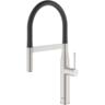 - Смеситель поворачивается на 360˚ для максимальной гибкости, а выдвижная профессиональная насадка имеет два режима (стандартная струя и мощная струя) – идеальные для легкого выполнения множества кухонных задач.