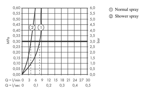 - Максимальный расход воды при 3 бар: 8,2 л/мин