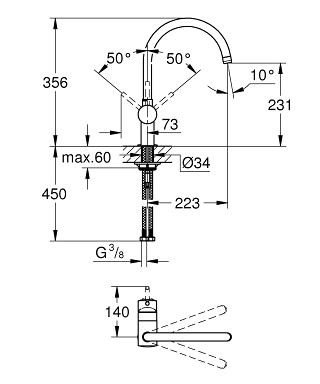 - Смеситель для кухни Grohe Minta, 223мм (32917KS0)