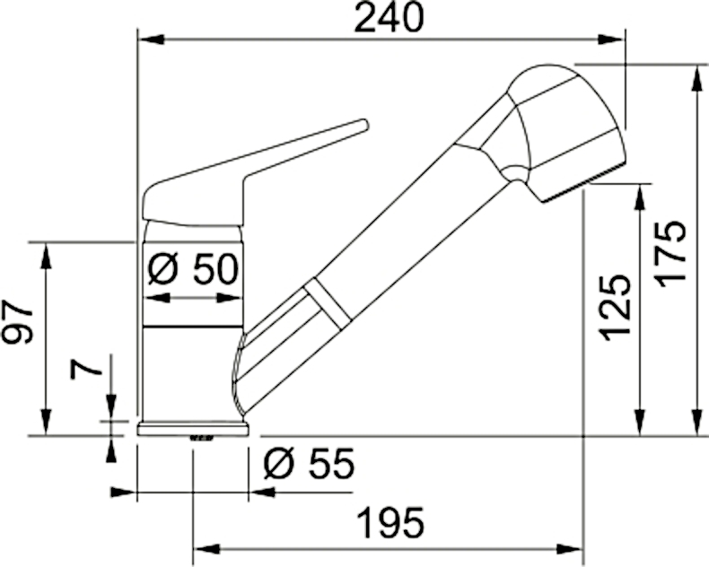 Кухонный смеситель оснащен поворотным вытяжным изливом с душем и верхним рычагом управления. Функция душа позволяет более эффективно мыть тяжелые загрязнения, а также значительно увеличивает площадь увлажнения, что очень удобно для тщательного мытья фруктов, ягод или листьев салата. Вытяжной излив позволяет удобно мыть всю поверхность мойки и наполнять посуду, которая находится за ее пределами. Угол поворота излива составляет 110°, поэтому водяной поток достигает большой площади мойки и позволяет угловой или боковой монтаж, поскольку ограничивает поворот излива и не позволяет проливать воду за пределы чаши.