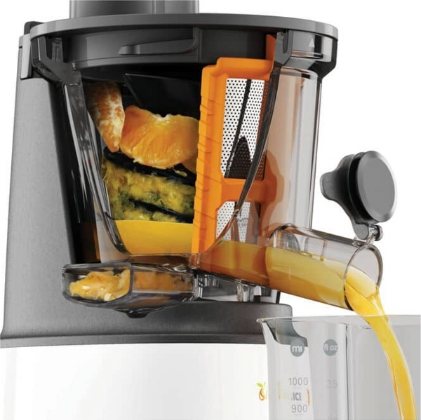 Соковыжималка PureJuice Pro предназначена для выжимания сока даже из самых волокнистых фруктов и овощей, поэтому отходы сведены к абсолютному минимуму. Подавайте целые кусочки непосредственно в трубку подачи, чтобы выжать весь сок, а остальное отделить в мякоть для использования в других рецептах, таких как овощные гамбургеры, пирожные или пюре.