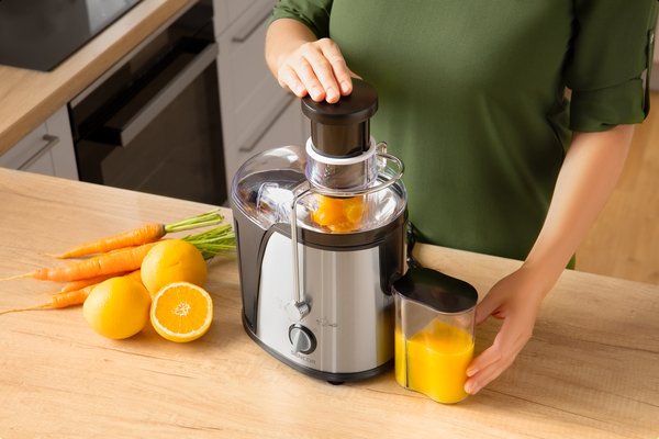 Муж подарил соковыжималку. Очень хорошая вещь и сок в ней получается замечательный, отжим выдает остатки почти сухие. Удобная в использовании, не шумная, если неправильно собрать, то она не включится. Все продуманно и качественно сделано