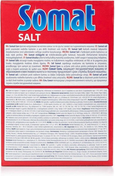Характеристики Соль для посудомоечных машин Somat 1,5кг