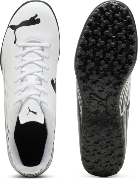 Сороконіжки Puma Attacanto II TT — это легкая и прочная футбольная обувь, созданная для игры на искусственном и твердом покрытии. Верх выполнен из синтетического материала, который обеспечивает оптимальный контроль мяча и простоту ухода. Внутренняя подкладка мягкая и комфортная, что снижает риск натирания во время активной игры. Амортизирующая стелька и устойчивая подошва с множеством резиновых шипов гарантируют отличное сцепление, устойчивость и маневренность на поле.