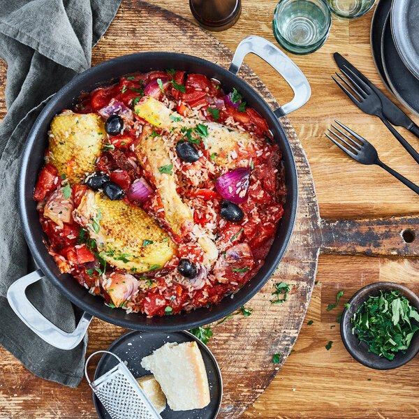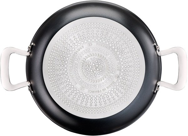 Шкварчание курицы в сковороде которое ни с чем не перепутаешь, звон посуды, быстрое скольжение лопаки в нужный момент... Экстремальная кулинария требует посуды, способной выдерживать экстремальные условия. Сочетая совершенно новое антипригарное покрытие TITANIUM - обладающее исключительной долговечностью, не допускающей пригорания - с очень толстой основой THERMO-FUSION+, сотейник Tefal Unlimited поднимает эффективность приготовления на совершенно новый уровень. Такая посуда — хорошее решение для людей, ценящих практичные вещи. Сковорода сотейник — универсальная комбинация, поскольку можно выбирать, как ее применить: как сковороду или как небольшую кастрюлю. Используя антипригарный сотейник Tefal, можно приготовить множество блюд — рагу, картофельное пюре, подливы, жаркое, каши, тушёные овощи, соусы и супы. При приготовлении рецептов с соусами, маринадами и бульонами сотейник позволяет получить вкусные, сочные блюда с максимальным сохранением полезных веществ и аромата. В случае, когда изделие используется как антипригарная сковорода для жарки, можно обойтись без масла: пригорание продуктов исключается, а момент разогрева индукционного дна поможет определить термоиндикатор. Сотейник также подходит для выпекания в духовке.