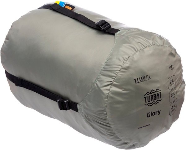 Turbat Glory - лимитированная серия летних спальников. Спальник с боковой левой молнией, легко и удобно закрывается. Наполнен новым синтетическим утеплителем TTLoft Insulation Si сделанным для Turbat в Украине, состоящим из эффективно сплетенных силиконизированных полых волокон. Благодаря ему спальник прост в уходе, прекрасно компрессируется и сохраняет тепло. Внешний материал имеет водоотталкивающую пропитку. Рассчитан на рост: до 175 см.