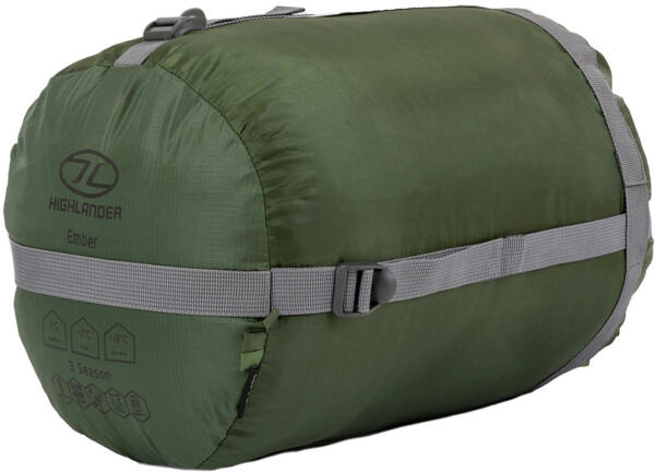 Highlander Phoenix Ember 250/-3°C Olive Green Left (SB243-OG) – прочный и теплый трехсезонный спальный мешок. Форма кокона подойдет всем, кто ищет дополнительного тепла в холодные ночи, а регулируемый капюшон делает его уютным и комфортным. Прочная наружная оболочка Ripstop защищает спальник от разрывов и царапин, а синтетический наполнитель сохраняет тепло, даже когда становится мокрым. Сверхпрочная внутренняя подкладка в области ног позволяет Вам спать, не снимая обувь. Вы можете брать спальный мешок Highlander Phoenix Ember 250/-3°C Olive Green Left (SB243-OG) куда угодно, поскольку плотно упаковывается в небольшой компрессионный чехол. Спальник можно уложить в рюкзак, дорожную сумку или багажник автомобиля.