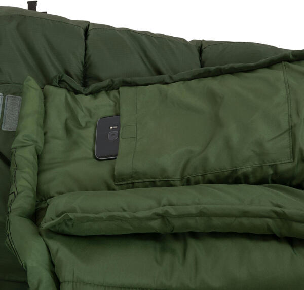 - Спальный мешок имеет удобный карман на липучке на плечевой перегородке для хранения телефона или других ценностей.