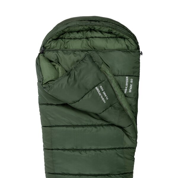 Highlander Phoenix Flame 400/-9°C Olive Green Left (SB244-OG) – прочный четырехсезонный спальный мешок с высокой теплоизоляцией. Форма кокона подойдет всем, кто ищет дополнительное тепло зимними ночами, а регулируемый капюшон делает его уютным и комфортным. Прочная наружная оболочка Ripstop защищает спальник от разрывов и царапин, а двухслойный синтетический наполнитель сохраняет тепло, даже когда становится мокрым. Сверхпрочная внутренняя подкладка в области ног позволяет Вам спать, не снимая обувь. Данную модель можно соединить со спальным мешком Highlander Phoenix Spark 150/+4°C Olive Green Left (SB242-OG) с помощью простой системы крючков и петель, чтобы создать спальник для экстремальных температур. Вы можете брать спальный мешок Highlander Phoenix Flame 400/-9°C Olive Green Left (SB244-OG) куда угодно, поскольку плотно упаковывается в небольшой компрессионный чехол. Спальник можно уложить в рюкзак, дорожную сумку или багажник автомобиля.