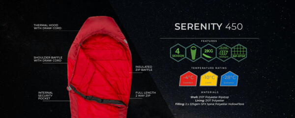 Описание Спальный мешок Highlander Serenity 450/-10°C Red Left (SB187-RD)