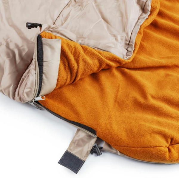 Выполнен из дышащей гипоаллергенной ткани и синтетического силикатизированного утеплителя плотностью 550 гм. Внешний слой имеет водоотталкивающую пропитку ткани и не пропускает влагу внутрь. Внешний слой изготовлен из полиэстера 190 Т, который имеет водоотталкивающие свойства, создает дополнительный комфорт во время влажной погоды, защищает вас от попадания влаги внутрь спального мешка, а затем будет теплее.