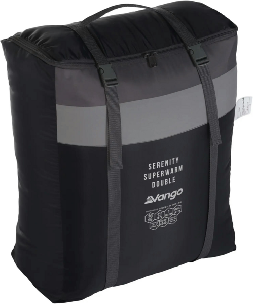 Новинка 2020 года - серия более утепленных спальных мешков Vango Serenity Superwarm. Этот спальный мешок обеспечивает тепло и высокий уровень комфорта от весны до осени. Его главной особенностью является возможность использования как одного общего спального мешка для двоих или как двух отдельных односпальных мешков. Двухслойное размещение утеплителя ThermoLock Pro обеспечивает лучшие эксплуатационные и термоизоляционные характеристики, утеплитель в случае возникновения пожара не горит и сохраняет свои свойства даже во влажных условиях. Модель подходит как спальный мешок для ночевки в палатке, а также как широкое одеяло для ночевки в трейлере или в доме двух и более людей. Специальная прошивка Hexagon, утеплительный борт, вдоль змейки, а также соприкосновение внешних и внутренних швов должны дополнительно улучшить теплоизоляцию. Интегрированный подголовник намного повысит уровень комфорта. Спальный мешок имеет удобный и объемный компрессионный чехол для транспортировки.