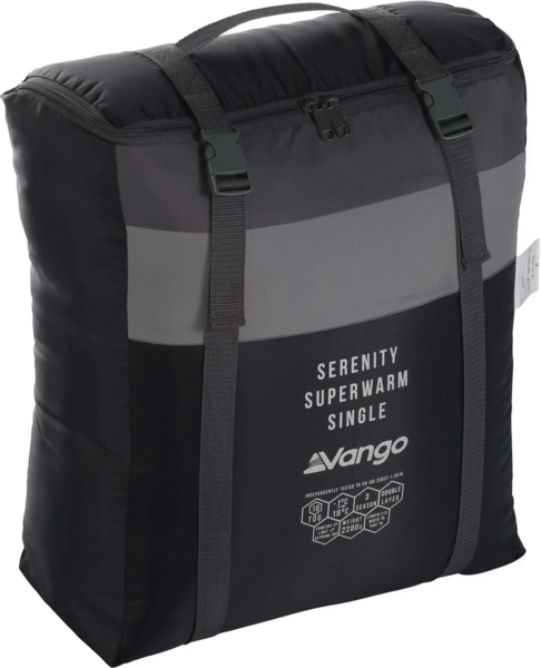 Vango Serenity Superwarm Single Shadow Grey Left (SBQSERENIS32S7H) - стильный спальный мешок с отличными характеристиками при невероятном комфорте. Данная модель прямоугольной формы с двухслойным утеплителем, а также мягкой на ощупь подкладкой, которая создает ощущение домашнего уюта во время отдыха на природе. Спальный мешок Vango Serenity Superwarm Single Shadow Grey Left (SBQSERENIS32S7H) рассчитан на рост до 190 см, предназначен для кемпинга с начала весны до конца осени.