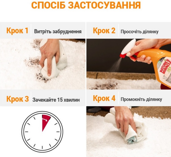 Уничтожитель пятен и запахов Окси-формула для собак от Nature‘s Miracle - идеальный выбор для владельцев животных, желающих быстро избавиться от пятен и запахов. Формула, насыщенная активным кислородом, разрывает связь между загрязнением и поверхностью и способствует его распаду. Окси-формула освежает цвет ковров и мягкой мебели, позволяя им выглядеть более новыми. Средство прекрасно справляется с пятнами и запахами, оставленными собаками и другими животными, на коврах, мебели, твердых поверхностях, тканях, переносках, спальных местах животных.